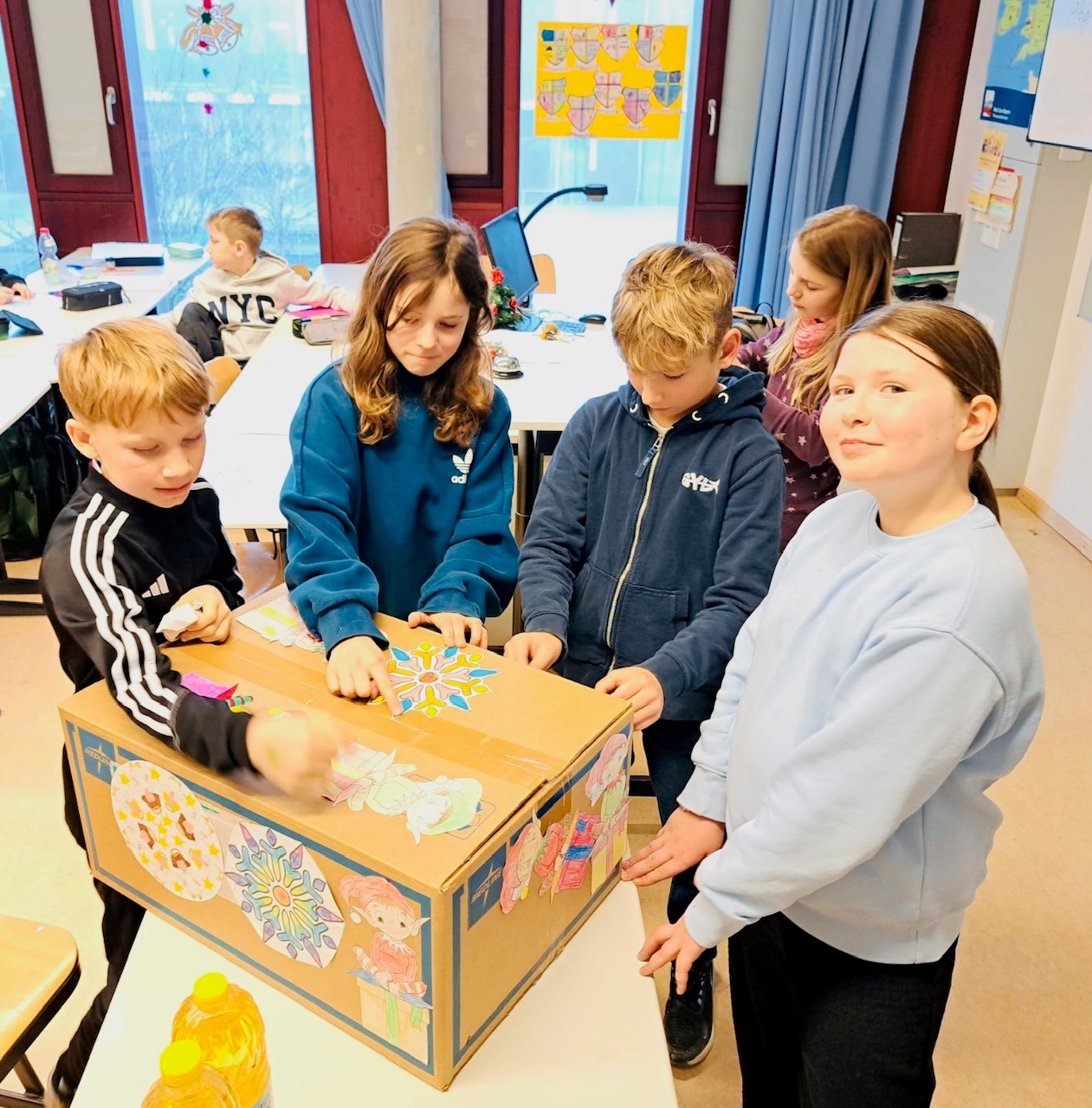 Mit großem Engagement stellten die Klassen Päckchen mit haltbaren Lebensmitteln sowie Hygieneartikeln zusammen. Die Pakete wurden sorgfältig gepackt und sollen Menschen in Not ein wenig Unterstützung und Hoffnung zur Weihnachtszeit schenken. Insgesamt konnten 25 Weihnachtspakete gesammelt werden. Am 19.12.2025 wurden diese offiziell an die Johanniter übergeben, die den Weitertransport und die Verteilung der Pakete nach Osteuropa übernehmen und Familien dort ein kleines Lächeln zur Weihnachtszeit schenken.